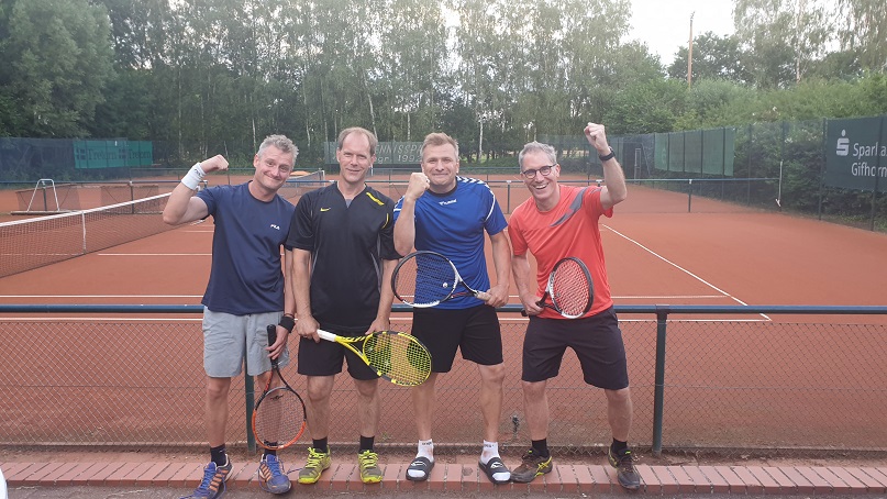 Mit einem wieder hart erkämpften 4:2 Auswärtssieg in Bergfeld hat sich die Herren 40 des TC GW Hankensbüttel vorzeitig die Meisterschaft und den Aufstieg gesichert. Aufgrund eines weiteren Punktspiels in Bergfeld startete die Partie erst um 14:00 Uhr. Die 4 Einzelpartien wurden deshalb bei knapp 30C und strahlendem Sonnenschein für alle Beteiligten zur Hitzeschlacht.