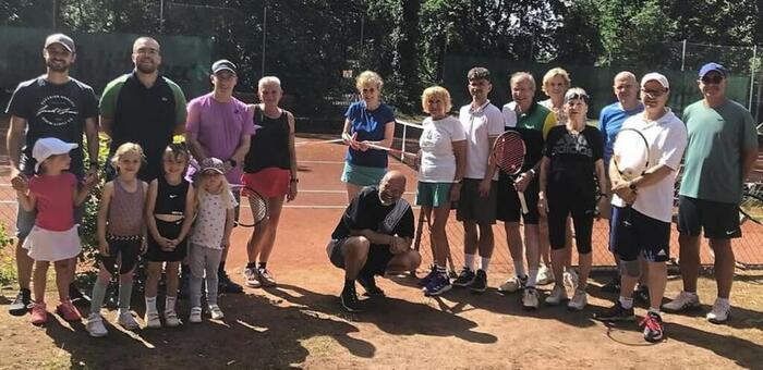 Feierliche Einweihung: Mitglieder und Gäste testen begeistert den neuen, barrierefreien Ganzjahresplatz des Tennisvereins am Finkenweg. © privat